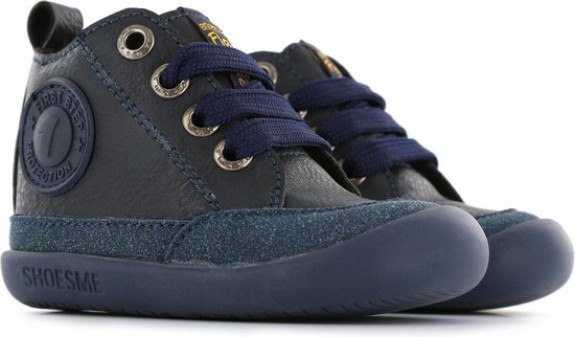 Shoesme Baby-Flex donkerblauwe Leren loopschoen met flexzool