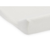 100% badstofkatoen. Aan de randen zit elastiek net als bij een hoeslaken. Zo blijft het goed zitten!